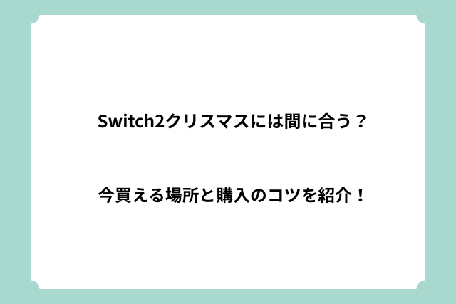 Switch2はクリスマスまでに買えるのか、どこで売ってるのかについてご紹介します。 こんなお悩みはありませんか? クリスマスにSwitch2をプレゼントしたい どこでSwitch2を買えるのか分からない 抽選じゃなくすぐ買える方法が知りたい クリスマスは1年で最... -