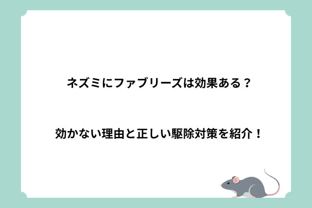 ネズミにファブリーズは効果があるのか、紹介します。 こんなお悩みはありませんか? ネズミにファブリーズって効くの? 糞尿のニオイ対策に使っても大丈夫? スプレーだけでネズミを追い出せるか知りたい 使っても意味があるのか悩みますよね。 そこでネ... -