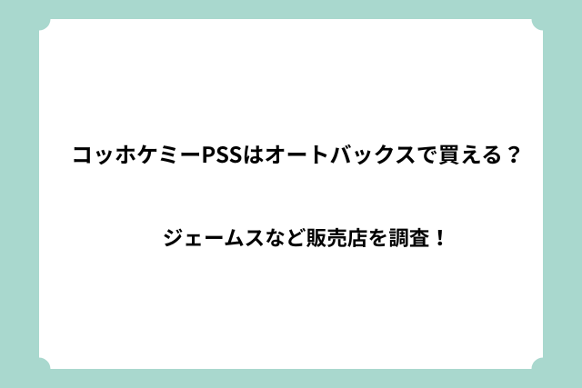 コッホケミーPSSはオートバックスで買えるのか、ジェームスなどどこで売ってるのかについてご紹介します。 こんなお悩みはありませんか? コッホケミーPSSをオートバックスで買えるか知りたい ジェームスで販売されているか気になる どこで売ってるのか分... -